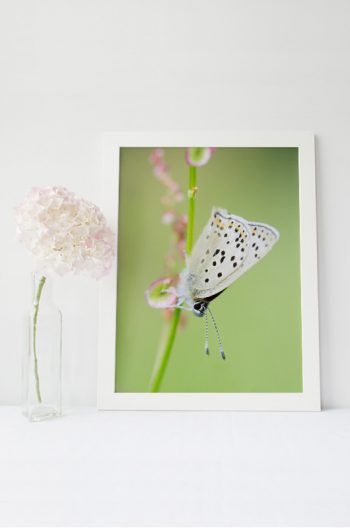 Papillon dans une prairie, photographie haute résolution d’un papillon Azuré. Le cliché met en valeur l’insecte sur une fleur sauvage ; une image de nature estivale et de biodiversité.